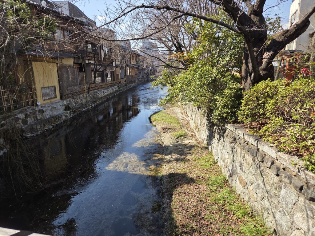 川の両側には昔ながらの町家や料亭、茶屋が立ち並び、花街ならではの静かな雰囲気が漂います。